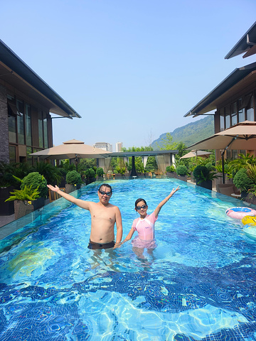 完全没有漂白粉味道的泳池!!还是无边的,贼出片!!女儿来了没换衣服直接就下去了!!!