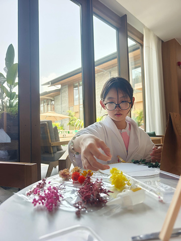 第一天住的一层,双床房花万里390含早,泳池旁边就是客房,各种舒适!房间所见即所得,带小露台非常宽敞豪华,还有迎宾小点心水果!第二天住2层,因为头天房间水龙头有点漏水,补偿特价268!比一层静谧,女儿做了个DIY团扇,很漂亮,但旅途易碎就留到酒店了,游累了在大厅茶座吹吹空调,或者在泳池边茶座,点一杯冰美,刷一下手机,爽的不想回家。