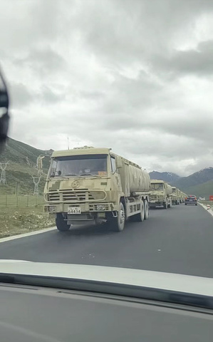 一直封到下午四五点,突然一个兵哥哥背着枪跑过来,背着一把95式!只见后面一排的军用卡车呼啸而过,我们的车队也开始动了!