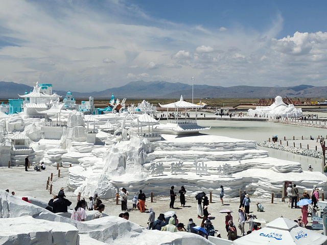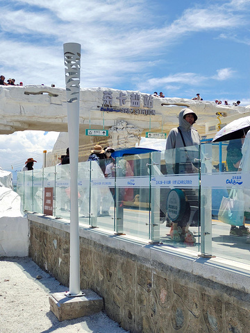 此生不来系列。25年7月27进园,晴天有风,体验极差。人很多,165大人票两张,135孩子票,另收停车费10元,吃饭饮料120,景区周围毛都没有,全部开销都是景区的,还要再收停车费真是。一家人大约六百元,要说不算贵,但谁去谁知道。基本上就是一个大盐池,中间开发了一个火车道,入口处人造了几个水泥雕塑,喷白,干啥都得排队,暴晒,遮阳棚极少,院区停车场出口由于有火车道,堵车长达半小时。