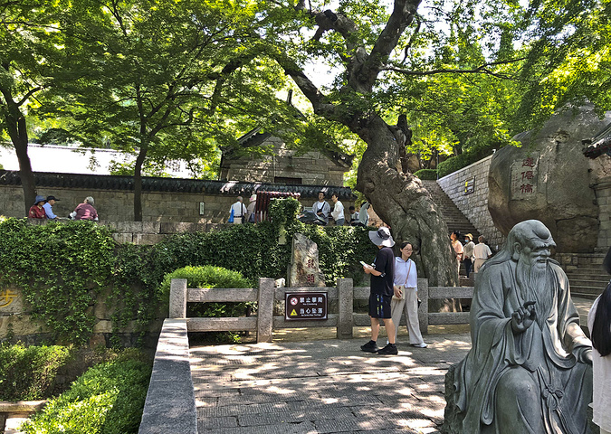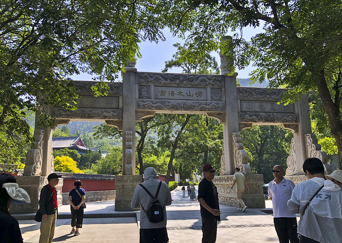 今天继续游览崂山,7:00多点出门,4号线到大河东游客中心,观光车到太清宫。太清牌坊离海边很近,先过去海边看看,清晨阳光下海水清澈湛蓝。