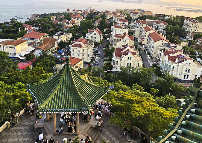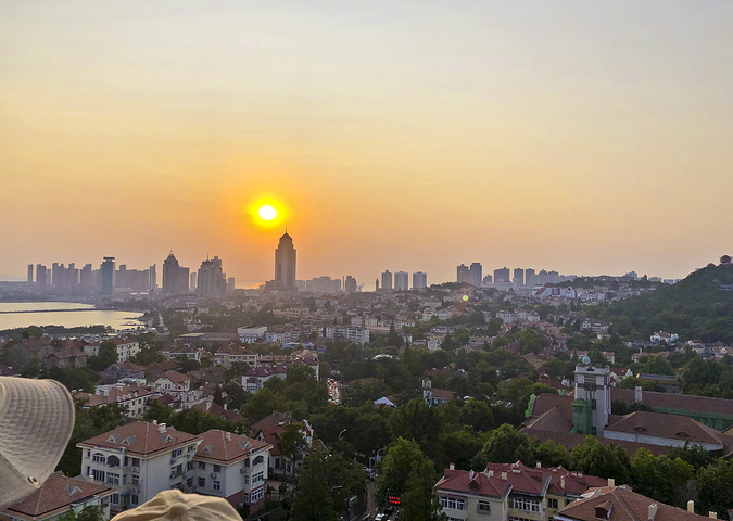 回来又休息到4:30,这就是距离景点近的好处呀。打车去小鱼山,真是2分钟就上来了,又爬到亭子上,但天空还是雾雾的,落日也就没什么可看的了,转了一圈下山准备去海信广场天台。来自游记【漫步青岛】从晨光到夜色,收获一座城的温柔(公交游记攻略)