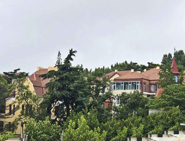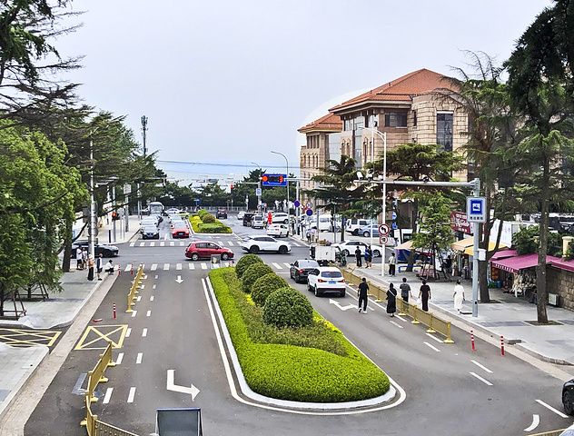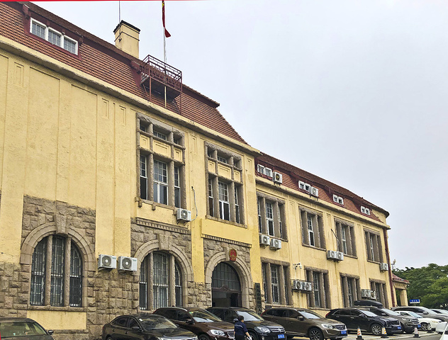 教堂的院子下面就是我多次走过的地铁站。从这里的较高位置放眼四顾,周围漂亮小洋楼挺多,院子里环境很好,我在绿树长椅中坐了一会儿,下来又忍不住走走湖南路。到了胶澳总督府旧址前,如今大楼是个政府机关,前面大片草坪,环境好,地势高,向下一直看到大海。还有不少休息的长椅,面对大海坐下来,享受在美好温柔的环境中。
