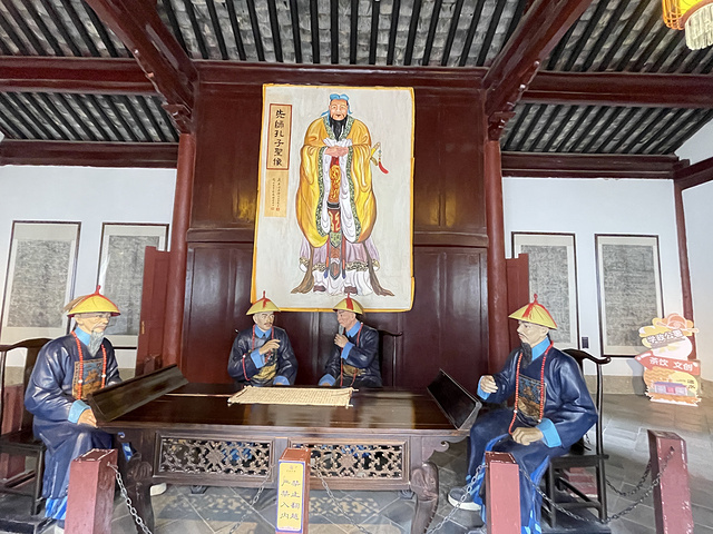 杏坛,孔子教学喜欢在亭子,因此有孔子的塑像