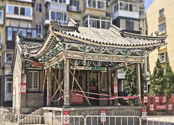 斜对面就是福建会馆,正在修无法参观。不远处还有个天后宫戏台,过去看看状态还不错,被居民楼包围着竟然保留到今天。