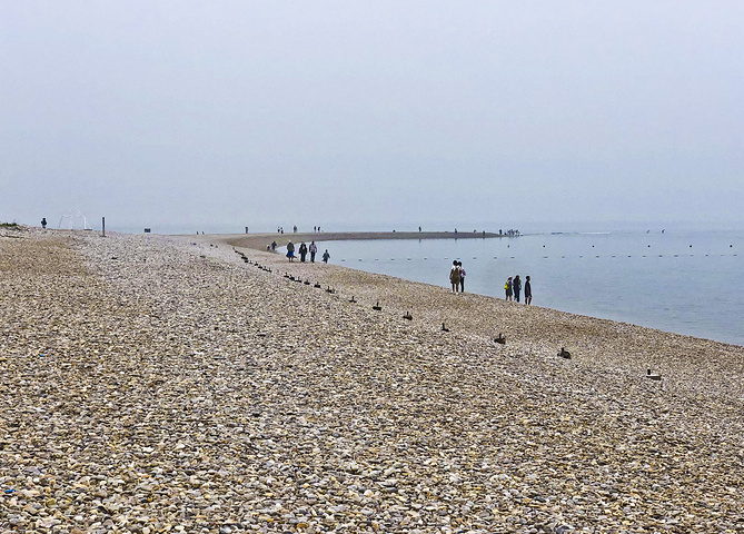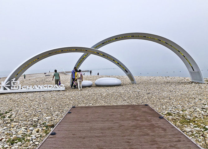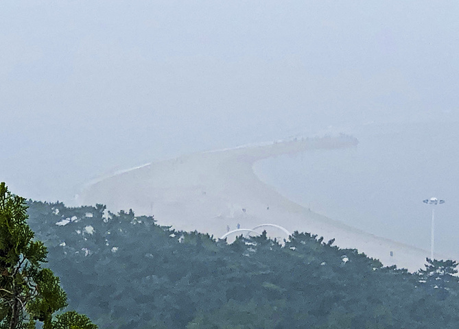 乘上电瓶车继续走就可来到分界线的海边,有长长的木栈道通向里面,我一直走到最里面,大雾影响不到画面了,拍了好多张两个海向中间冲的浪花,但不够理想,一是浪太小,二是总有人在玩儿,影响画面。