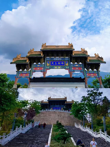 蜜梨公园的果林在坡上铺成一片,枝叶间藏着饱满的果实,像撒了一地的绿宝石;黑龙峡的水潭映着天,蓝得像块被遗忘的绸缎;天上街市的石板路在山巅延伸,两旁的小店透着闲适,老板们摇着蒲扇,等着客人上门。