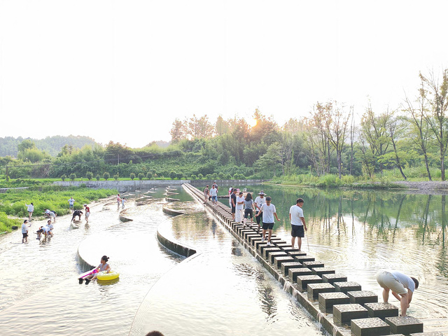 葛村鱼鳞坝有很多人在这里玩水溯溪。
