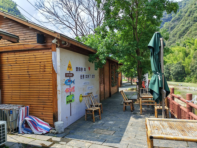 沿着盘山公路缓缓而下,我们逐渐靠近了月亮湾。月亮湾人明显多了起来,很多大人、小孩在河里玩的不亦乐乎。我们玩了一会后在附近找了一家饭店停车吃饭。