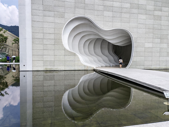 下午,我们去了宣纸博物馆。宣纸博物馆的外观设计就颇具匠心,整体像一卷展开的巨大宣纸,墙面的纹理模仿宣纸的质感,层层叠叠,古朴而典雅,远远望去,就像一件精美的艺术品,非常适合打卡。
