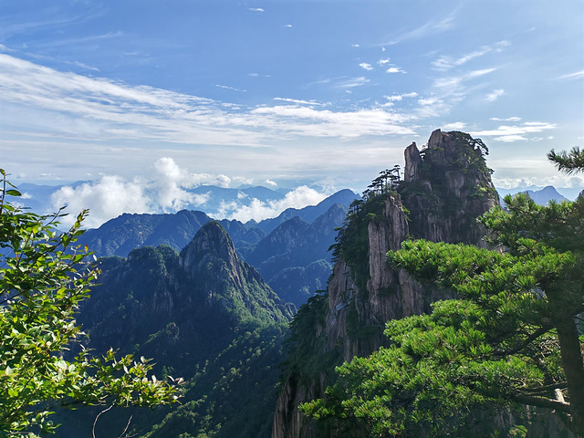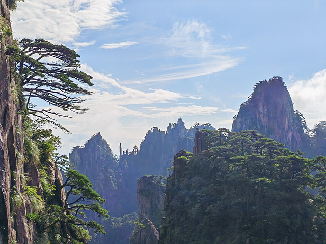 下了索道后,我们沿着山路前行,一路上欣赏着各种奇景。石笋杠有十八罗汉朝南海近景。上坡前往始信峰,有探海松,竖琴松,接引松,看701发射塔。