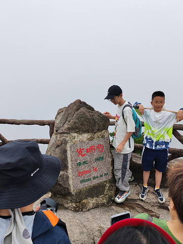 光明顶牌子处拍照人排队很多。