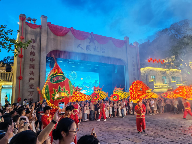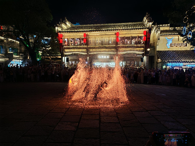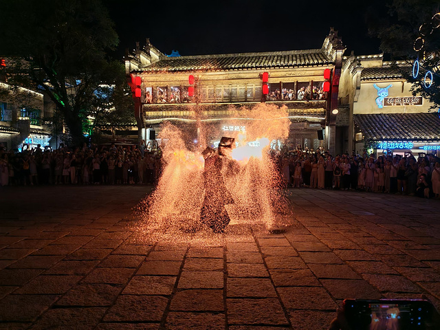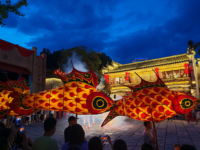 晚上我们一路走到弦高古城吃晚饭,沿着弦高古城逛了一圈,打打卡,接着在广场看川剧,这里也有鱼灯巡游表演,8点还有火壶表演。