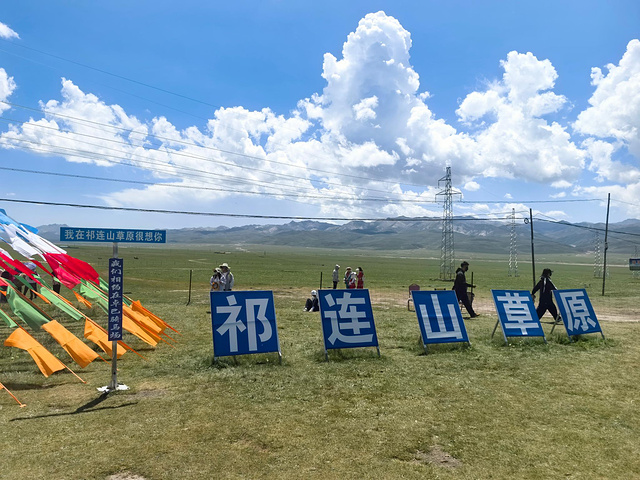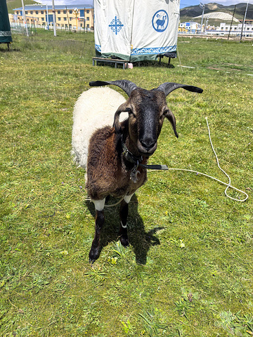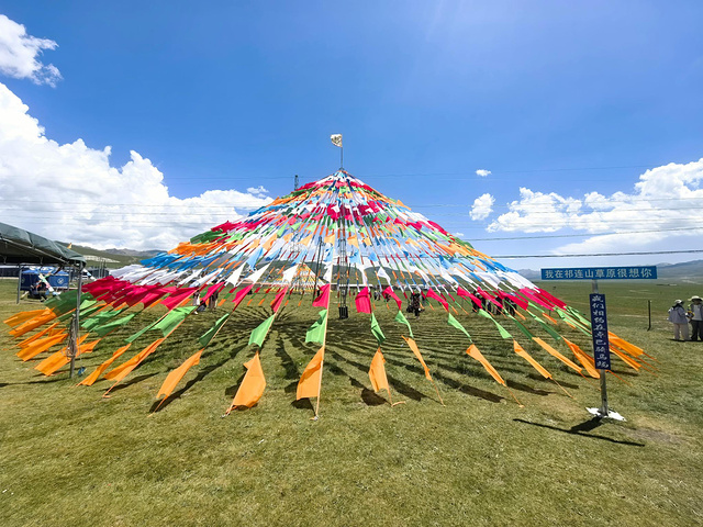 李师傅带我们抵达的这片祁连山草原,原是牧民圈地经营的场所,马场、毡房与色彩鲜明的经幡错落分布,透着几分商业化气息。只因这里消费定价不低,我们并未参与付费项目,只在经幡下拍了些照片,又逗弄着身旁温顺的小羊,简单留下了一段草原记忆。