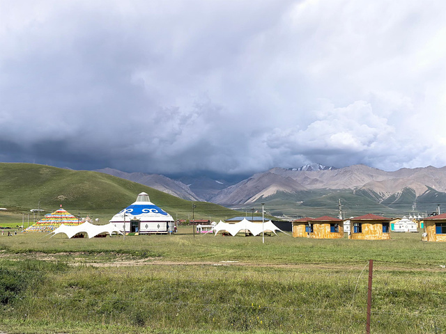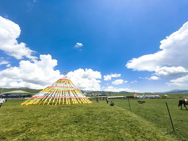 草原的景色还是很美的,脚下是铺展到天边的绿草地,头顶是澄澈的蓝天,雪白的云朵,彩色经幡在风里轻轻摇曳,把这片天地衬得愈发灵动。