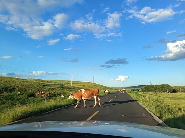 感谢导航给我们指了一条小路(四胜路),真正的路遇牛羊成群,体验了高山草原