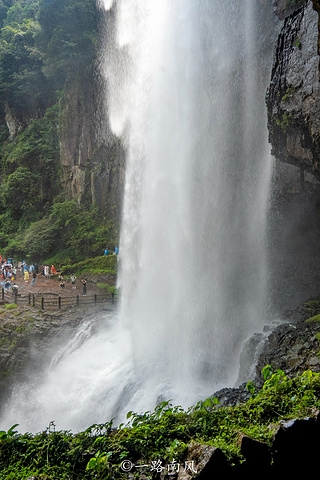 穿过第二漈瀑布是奇妙的体验,由于水雾较大且岩壁滴水密如下雨,需要穿雨衣快速通过。