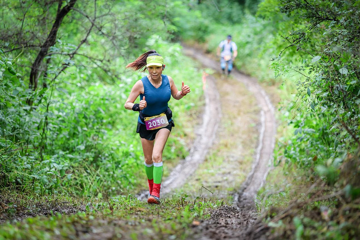 21公里个人赛女子组冠军鲁佳怡冲线瞬间