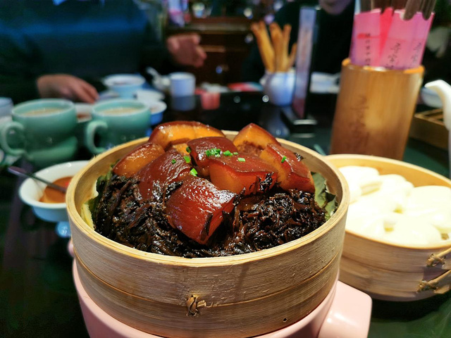 最记忆犹新的就是苋菜梗,之前看网上还有朋友反馈,感觉这道菜我应该是吃不了的,但本着“来都来了”的原则,还是要尝尝。寻宝记在这道菜上做了些调整,挖去内芯填入虾滑,还别说,怪好吃,很鲜。还有醉蟹、黄酒布丁、黄酒小笼,凡是和黄酒相关的都让我魂牵梦绕。