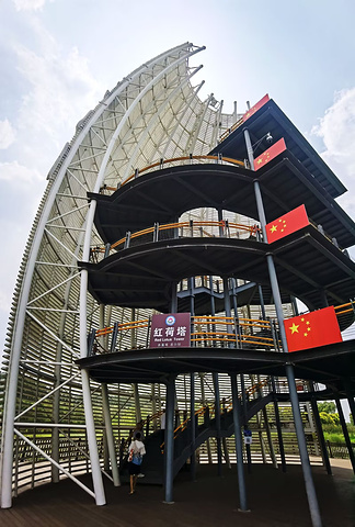 1、陆上游。主要景点有:博物馆、红荷塔、凤鸣园、将军亭、红荷湾、漂流园、鲁班草堂、荷花精品园、水生植物园等,还有网红溜索、水中踩莲、高空玻璃桥等游乐项目。