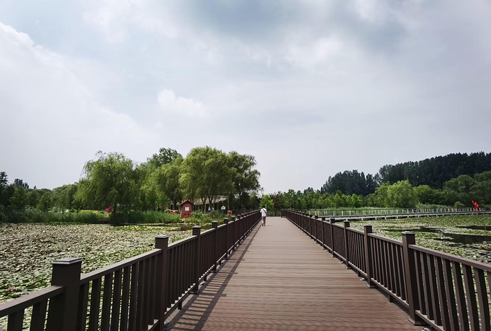 ②半程路线:不去坐船玩、其它都要玩。景区入口全程步行,游玩到红荷广场后止步,走回景区出口;如想少走点路的,可以搭乘景交车在荷花精品园站下车,游玩后在红荷广场乘坐景交车到景区出口。这种玩法最大化的少走路了、也最大化的看到了陆地上的主要景点,但微山湖、盘龙岛等船游的特色景点没看着。