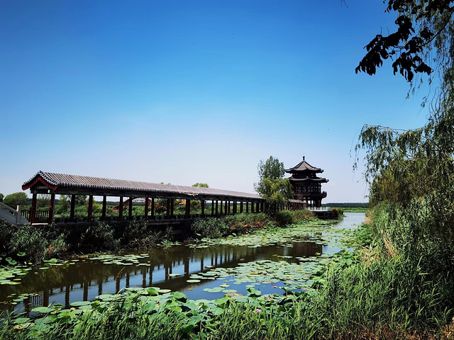 3、观澜亭。这座亭子为两层观景亭,与望湖阁、三仁殿在同一轴线上,北可看大河奔流,南可望湖阁耸立,东西两边还可赏秀美荷园,登临这座亭,撩清风送爽,观云卷云舒,听渔舟唱晚,闻莲飘暗香,甭提多酸爽了!
