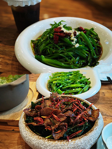 炝板水性杨花很鲜,口感嫩嫩的,这里特有的蔬菜但花头那不好吃,有刺。