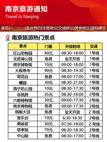 🚇地铁1号线:新街口、玄武湖、红山动物园、大报恩寺