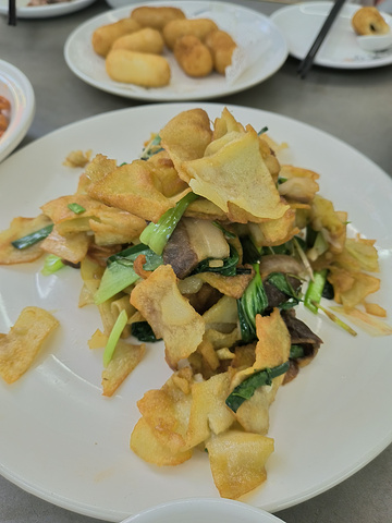 第一次吃腊肉炒黄陂豆丝,豆丝是大米、绿豆等磨浆、摊饼、切丝制成的,娃特别爱吃。