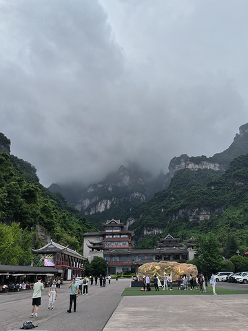 今天是行程的最后一天,下午的飞机回济南,上午只有天门山一个景点。天门山有三条路线,A线是索道上山,快线索道下山,B线与A线相反,C线是快线索道往返。导游定的B线,先做摆渡车去乘坐快线索道上山,当天天公不作美下起了雨,天门洞在大雾中隐约看见了一点,然后坐7级穿山扶梯到山顶,其实沿途景点还有很多,不过时间有限直接到下山索道入口了。下山索道全程20多分钟,穿越张家界市区,非常过瘾。