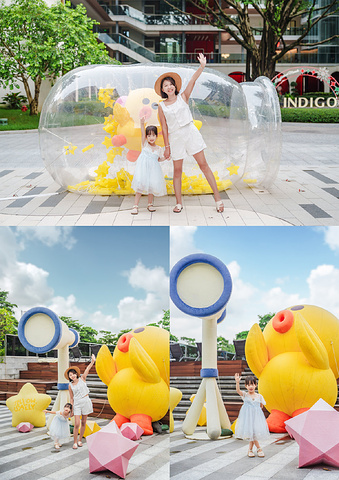 在这个夏季酒店还特别设置了「莎莉鸡」主题打卡装置,一个在酒店一层外侧,明黄色造型在绿植映衬下格外醒目;另一个设在泳池旁,与蓝天碧水相映成趣。这两个打卡点不仅孩子们喜欢,也成了网红拍照的热门地点。