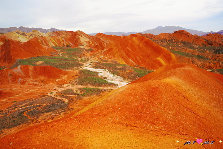 七彩敖河位于彩色丘陵腹地,是拍摄日出的绝佳地点。其名源于流经此处的间歇性河流——敖河(又称热河),主要涵盖彩虹山、万象琉璃、七彩嫁衣、祁连烽燧等景点。山体色带层次分明,极具视觉冲击力。