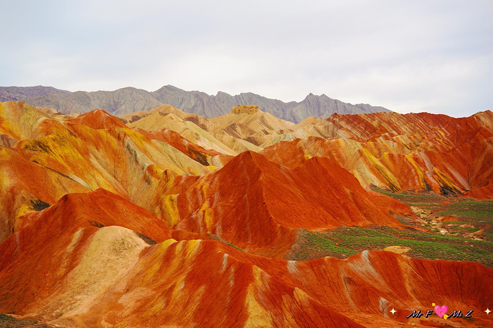 猛虎的对面是因电影《紫霞》而得名的桃花沟彩丘,远观宛如人间仙境。粉红的桃花盛开,与丹霞的七彩层理交相辉映,仿佛重现了电影中至尊宝与紫霞仙子那段动人而浪漫的爱情传说。