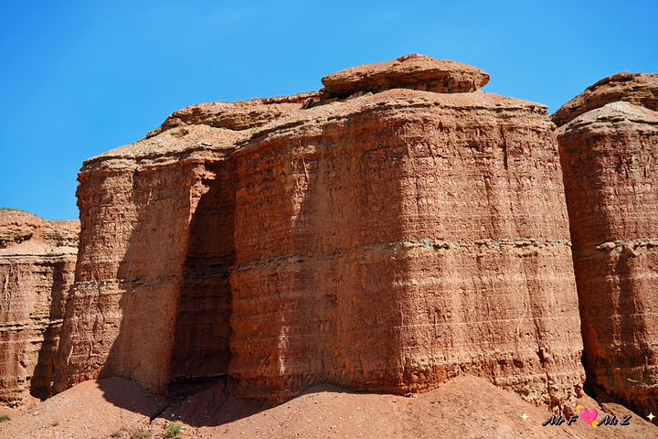 “天下粮仓”与“万佛山”遥相呼应,成排成行的砂砾岩壁好似粮仓阵列,周边的砂砾堆积恰似从仓中溢出的粮食,在阳光下泛着温暖的光泽,为这片外星秘境增添了一抹亲切的丰收图景。