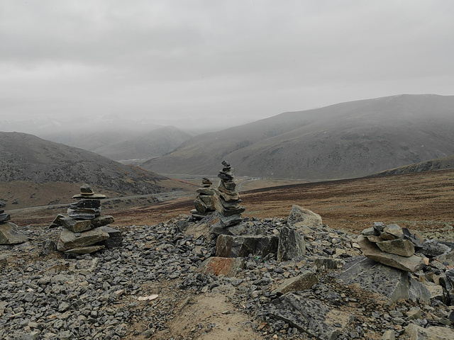 停靠一个小服务区,很多垒起的石块。