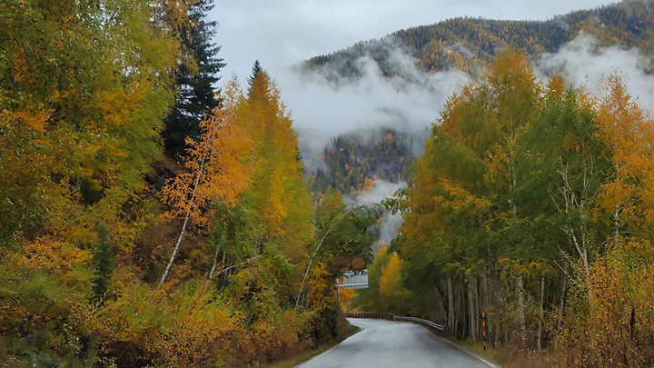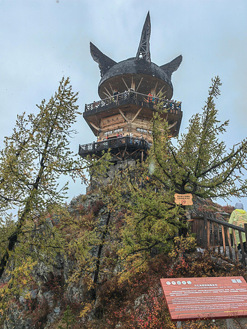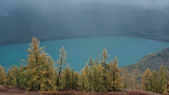观鱼台建于海拔2030米的山顶上,与湖面的垂直落差达600多米,是唯一一个能驻足饱览喀纳斯湖美景的最佳平台。但此刻雾气弥漫,没法看清。