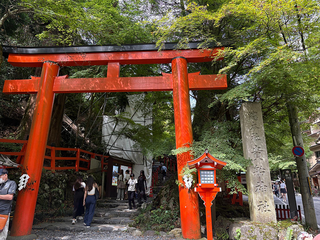 从7条坐车前往贵船神社,中途会坐上叡山电铁,XHS风很大实际景观一般,都是滤镜出品(同样电车线路好看推荐神户六甲山电车,那个超美详细见下面路程攻略)。这一天交通费是大头,非常贵,需要组好组合攻略。从7条走单程约JPY900-950(注意如果做33路巴士上山,那个需要用200的现金),从京都开始走景点一定要备好现金还有零钱,贵船神社水占、祈福类也是现金,备好多个100元硬币。 我们行程先体验流水素面/贵船中宫结社-贵船神社本社打卡-水占卜,短线旅程,时间充裕可以把全线都走完然后返程去鞍马寺。神社门口拍照人很多,因为上午贵船就没有看灯亮环节了,水占不用排队,排长队伍的是参拜本地人,按需求体验一下也行,因为贵船是水神,古代祈雨,大多游客选择水占卜,很有趣的体验。贵船景色和国内山景其实差不多,但是绿色中相间的红色神社别有一番独特之处。吃面加打卡我们差不多14点才开始返程,仍然坐33路先下山,然后GOOGLE到三千院,这个时间会有些紧张些,因为去三千院路上坐公交车车隔时间长,三千院17点关门。