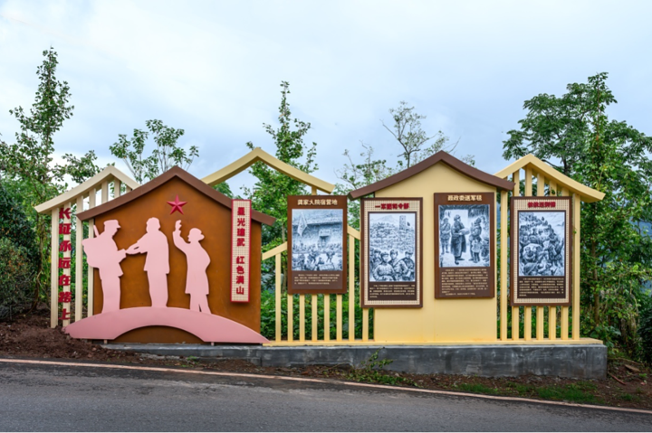 除了这些,九丝还建立起了长达6.3公里的红色文化主题长廊。一路上,红军标语、长征往事,都像连环画一样在墙面展出,如果你是自驾而来,建议一定要停车下来观看。