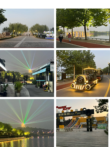 南湖公园。公园很大可乘观光车或租自行车游览。白天做观光车可随上随下(次数不详)。我们