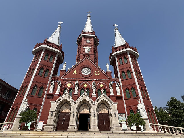 五家庄教堂。天主教堂,哥特式建筑,红色外墙据说不多见 ,里面有义务讲解。