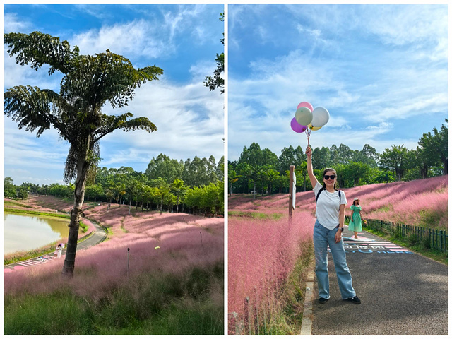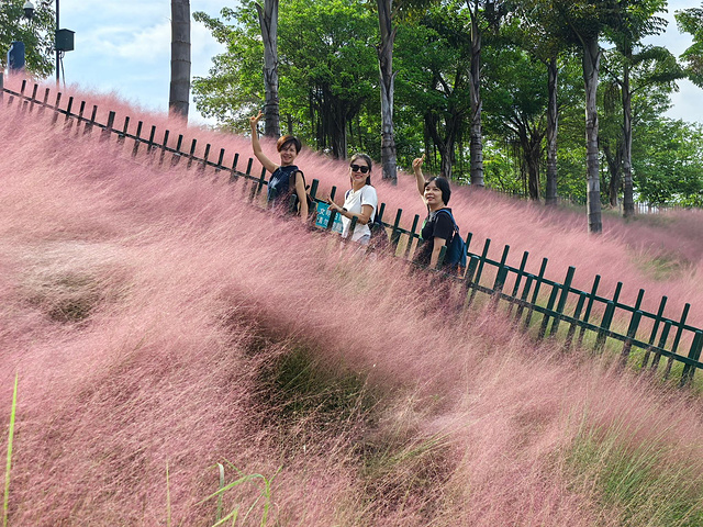 第一站直奔粉黛花海。这片由粉黛乱子草组成的梦幻花田,花期集中在9月至11月中旬,此时已进入最佳观赏期。远远望去,如烟似雾的粉色铺展在阳光下,已有不少游客在花丛中拍照留念。