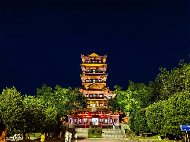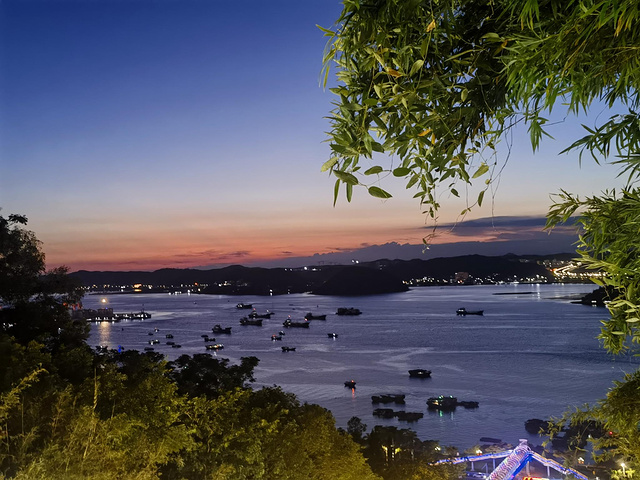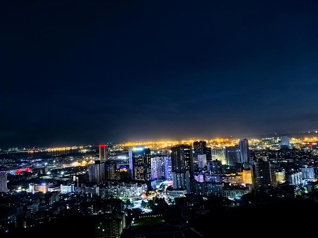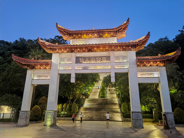 从东兴乘车过来时,我们就留意到了仙人山公园。它位于防城港港口区,离西湾城市沙滩不远。公园主峰海拔196米,山顶的仙人阁是观景绝佳点,可俯瞰港口全景,包括北部湾海景、防城港码头及西湾跨海大桥等。不过登顶并不轻松,网上说共有612级台阶,且坡度较陡,一路爬上来确实气喘吁吁。但到了山顶,视野豁然开朗:夜幕下的城市灯火与海面波光交相辉映,蛮好看的。
