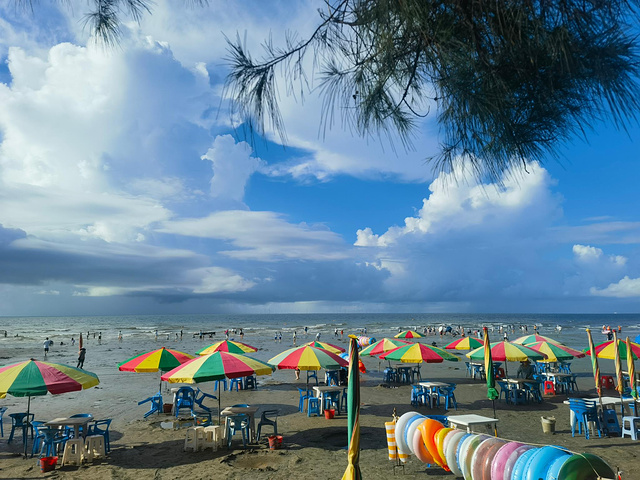 果然,一到白浪滩,天空已放晴,阳光炽烈得有些刺眼。海滩上游客不少,我们简单逛了逛,没久留。