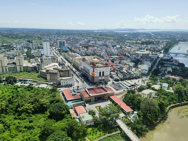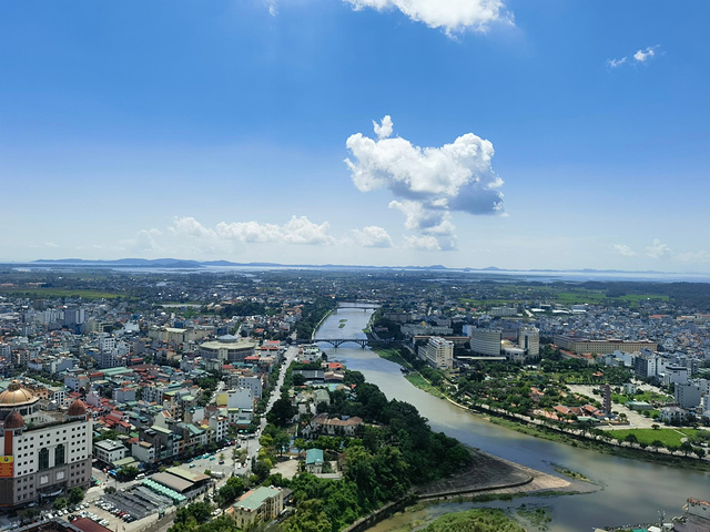 饭后,我们骑上共享电动车前往国门景区。假期景区门口人潮涌动,购票队伍一眼望不到头,果断放弃排队,转而前往华美达广场酒店的顶楼观景台观景。我们提前团购了门票,登顶后发现人不多。站在高处,东兴城区尽收眼底,一河之隔的越南芒街市也清晰可见,蜿蜒的北仑河作为中越界河静静流淌。