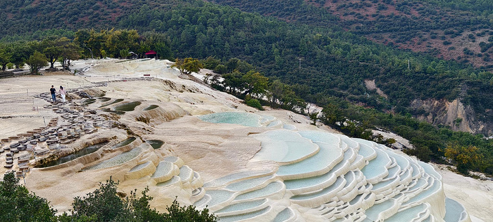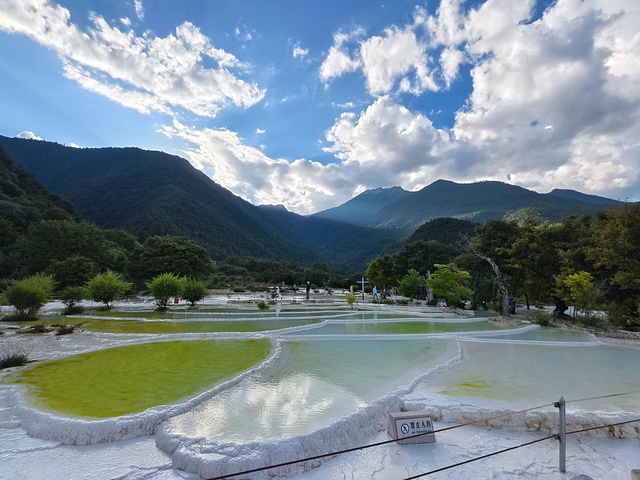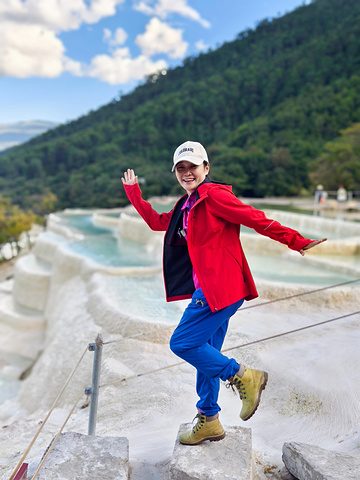 一路过来,我们停留了很多观景点,到达白水台已经快5点了,停好车,买了票就直接往山上走。