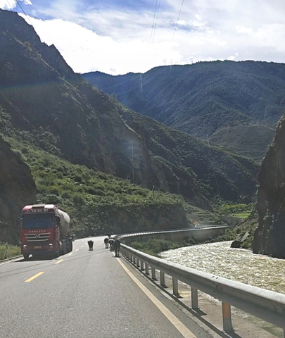 吃过早餐,街道上已经很安静了,游客基本离开,我们也要出发了,导航显示到今天的目的地如美镇因国道214临时管制,要该走215国道,时长要10个小时,比原来时间要多出4小时,几经商量和咨询,我们改走215国道。