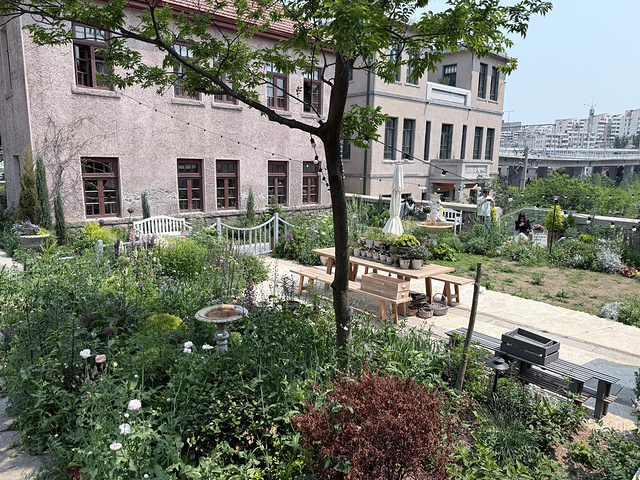 从信号山下来后,沿路走到波螺油子艺术谷(目的地是青岛啤酒博物馆),是一些“主理人”店,最里面有个花园,很多人打卡,小洋楼里有咖啡可以喝,可以坐短暂停留。