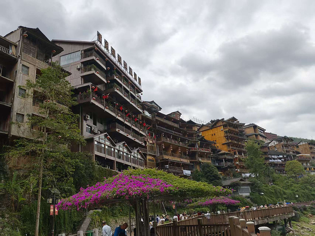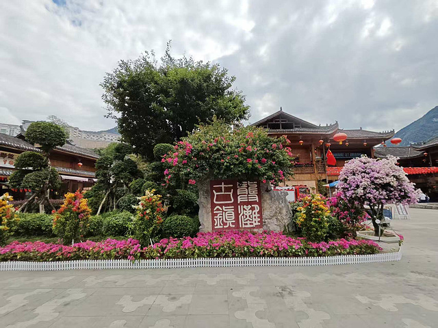 女儿回来时,手里拎着袋刚炸的野生小鱼,还举着手机给我们看:“老街里有明清的吊脚楼,木构的榫卯看得清,像能摸到当年的木匠活。” 午后坐电瓶车往古镇另一端去,竟撞见片开阔的广场 —— 红标语、心型绿植、“我爱中国” 的造型摆得热闹,连路都是平的,轮椅都能走。可返程船下午 3 点要开,我们只能匆匆拍了几张照,带着 “差一步就逛遍” 的遗憾往码头赶。