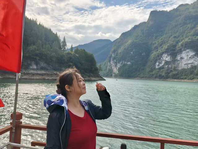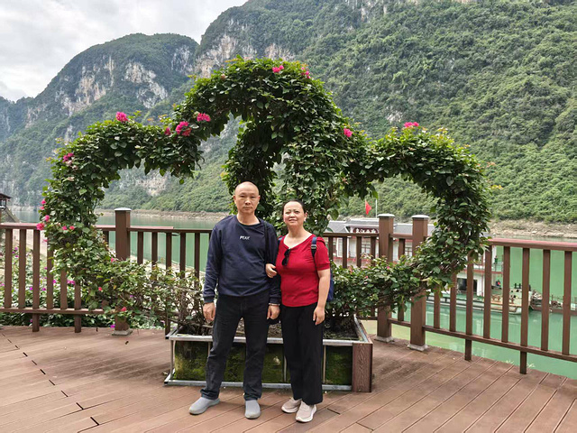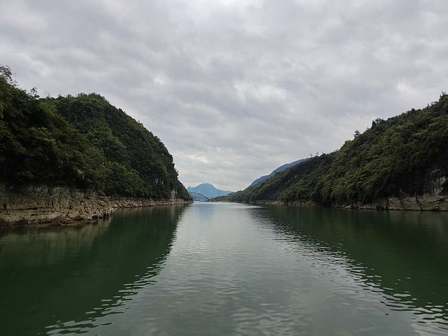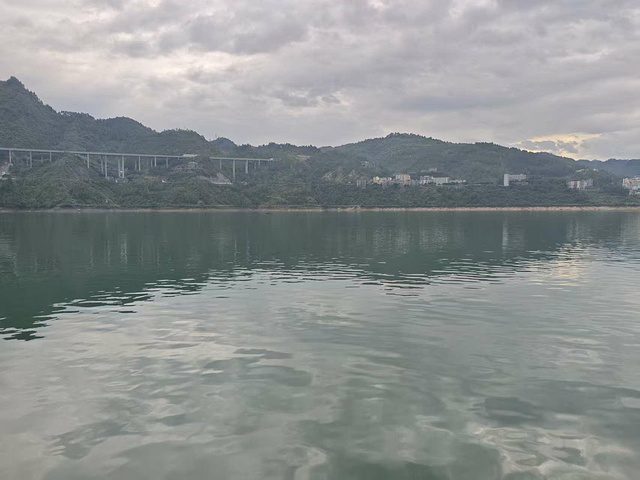 江上的铁索桥像根细银线,横拉在两山之间;沿江的高速桥则粗实,裹着钢混的重,一轻一重,倒像自然与人文在对话。江风裹着水草的清,拂在脸上,满船的人要么静望着,要么低声叹,快门声轻得像怕惊着山水。岳母跟邻座的阿姨聊得投缘,指着远处的山说:“这水比宜昌的清江还软,这趟没白来!”