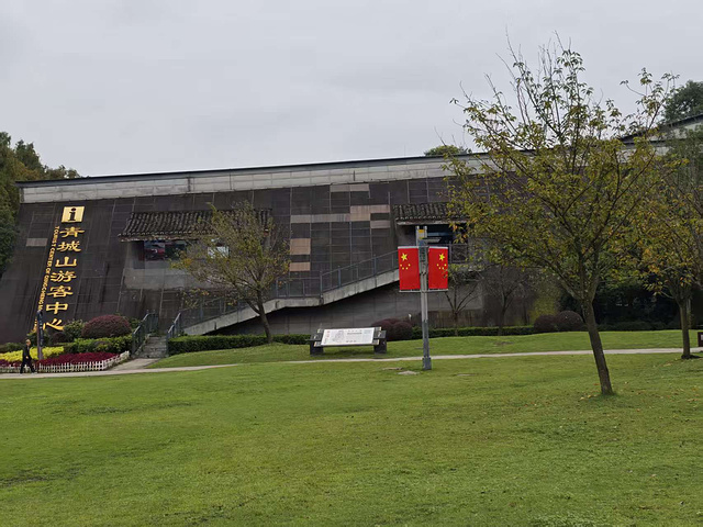 离开熊猫谷,在市区吃了顿川菜 —— 麻婆豆腐拌米饭、清煮牛肉配蔬菜,吃饱后往青城山赶。导航把我们引到游客中心,却见大门紧闭,门口的箭头指着 “问讯处”。绕了半圈才发现,所谓“问讯处”竟是康养中心,找看管行李的工作人员打听,才知要去前方半路坐电瓶车到山门,再买索道票上山。